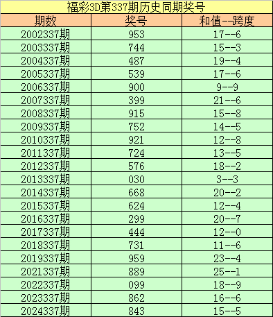 2024337期开奖号码:843